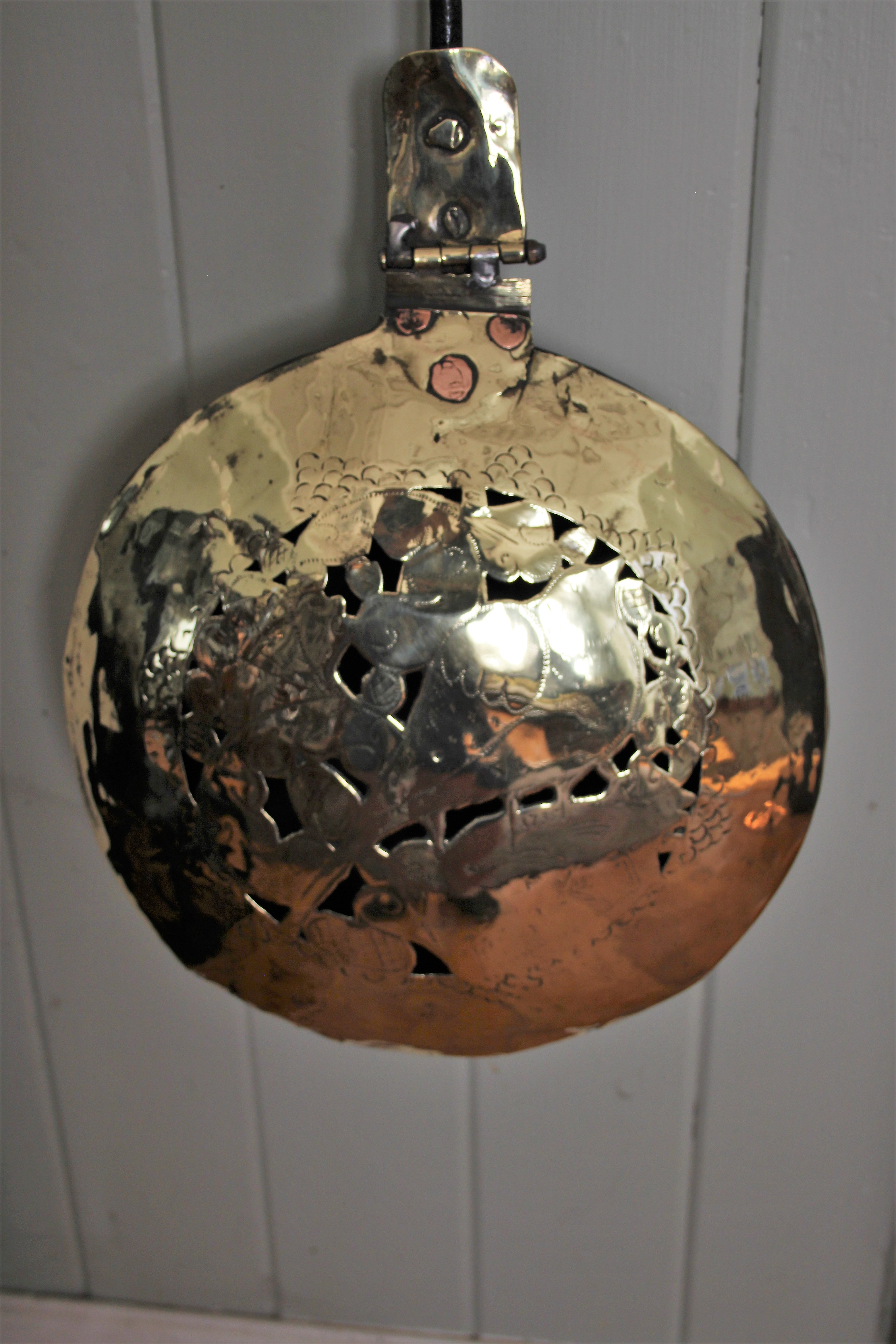 English 17th Century brass/latten and iron Bed Warming Pan. Pierced and finely punched decoration.