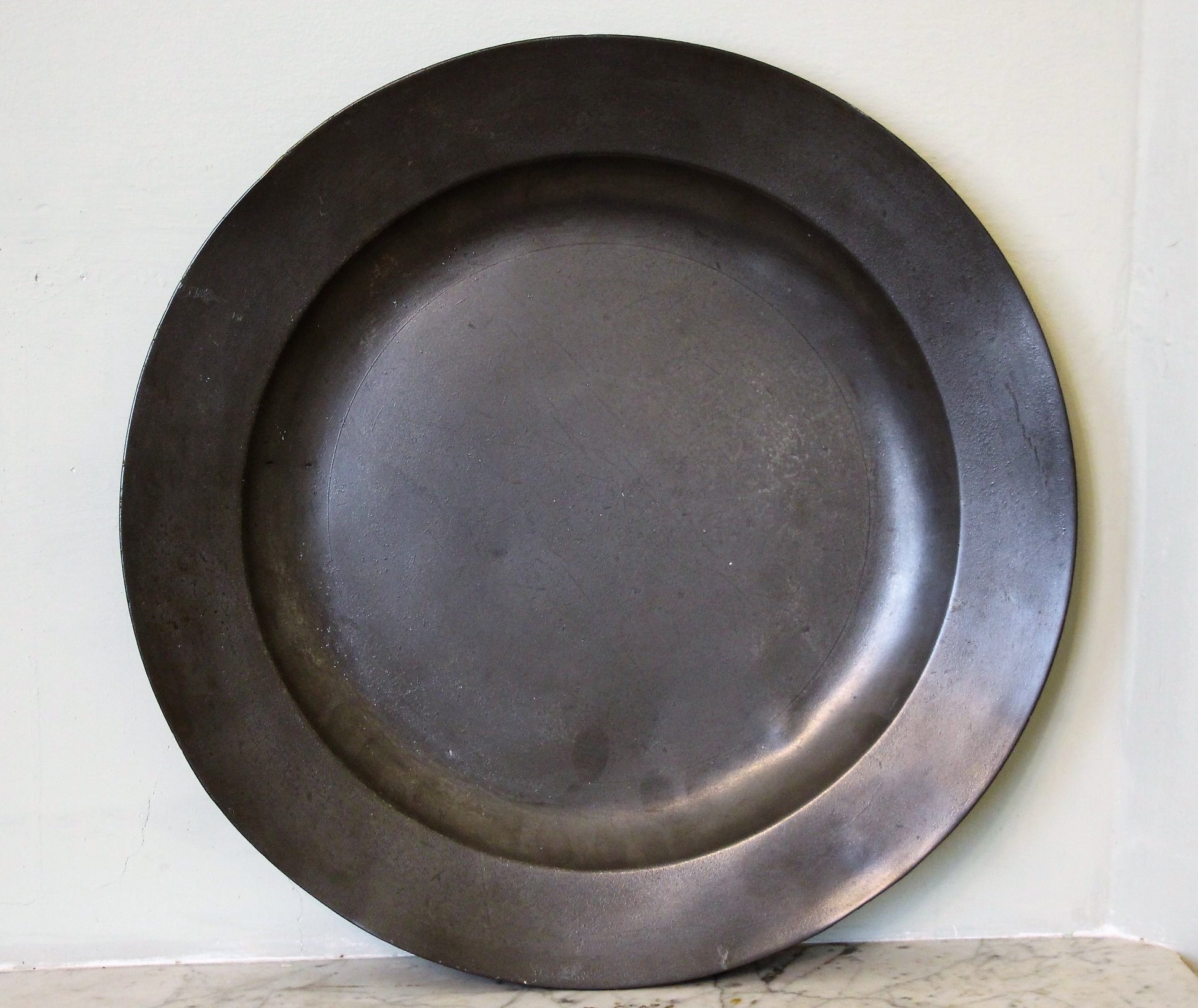 Very large Pewter charger by John Jupe of London working at "The Pewter Dish" in Queen Street Cheapside.
