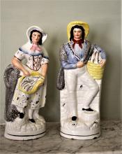 Antique large Staffordshire figures of Irish fisherman and wife