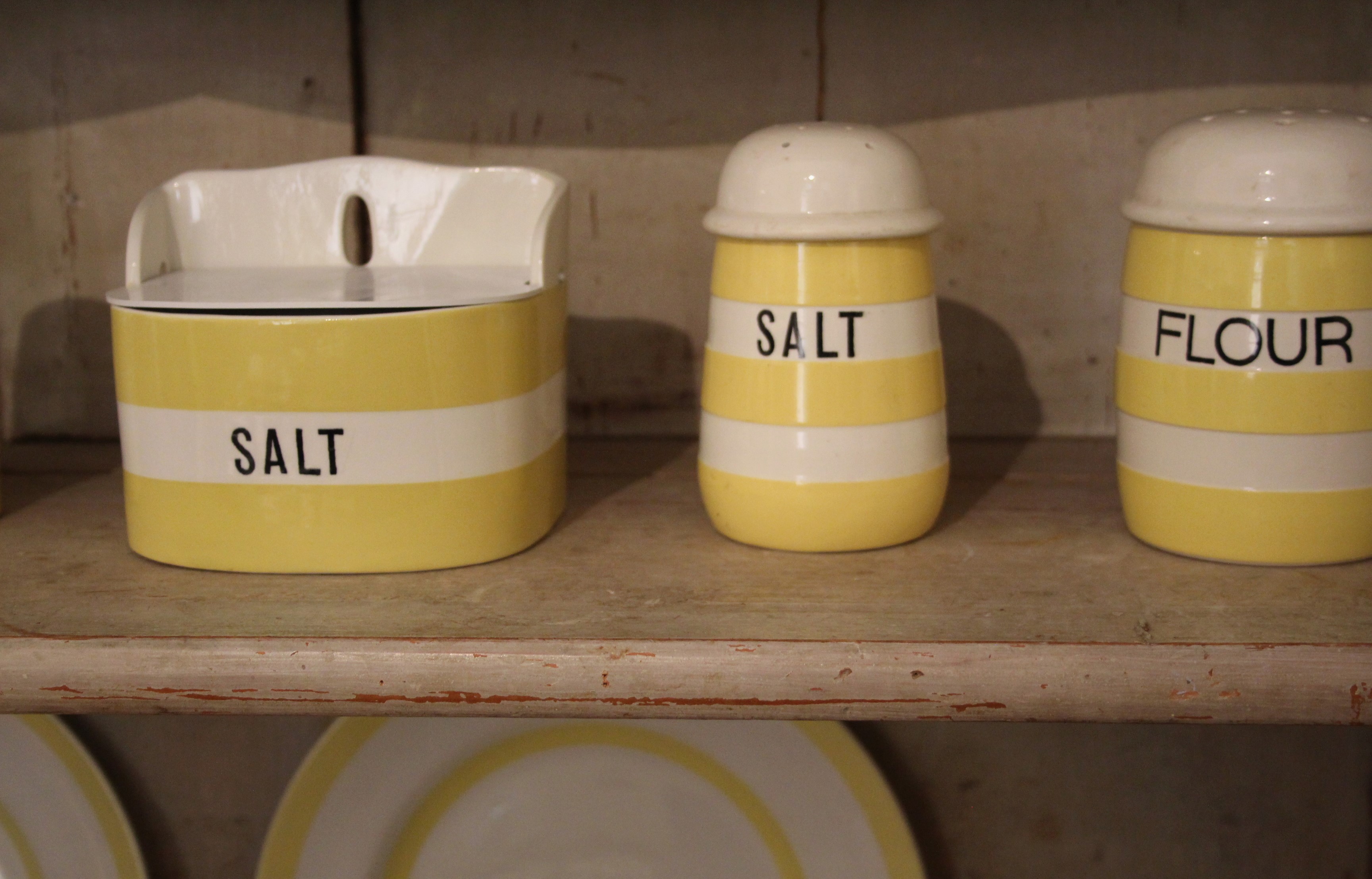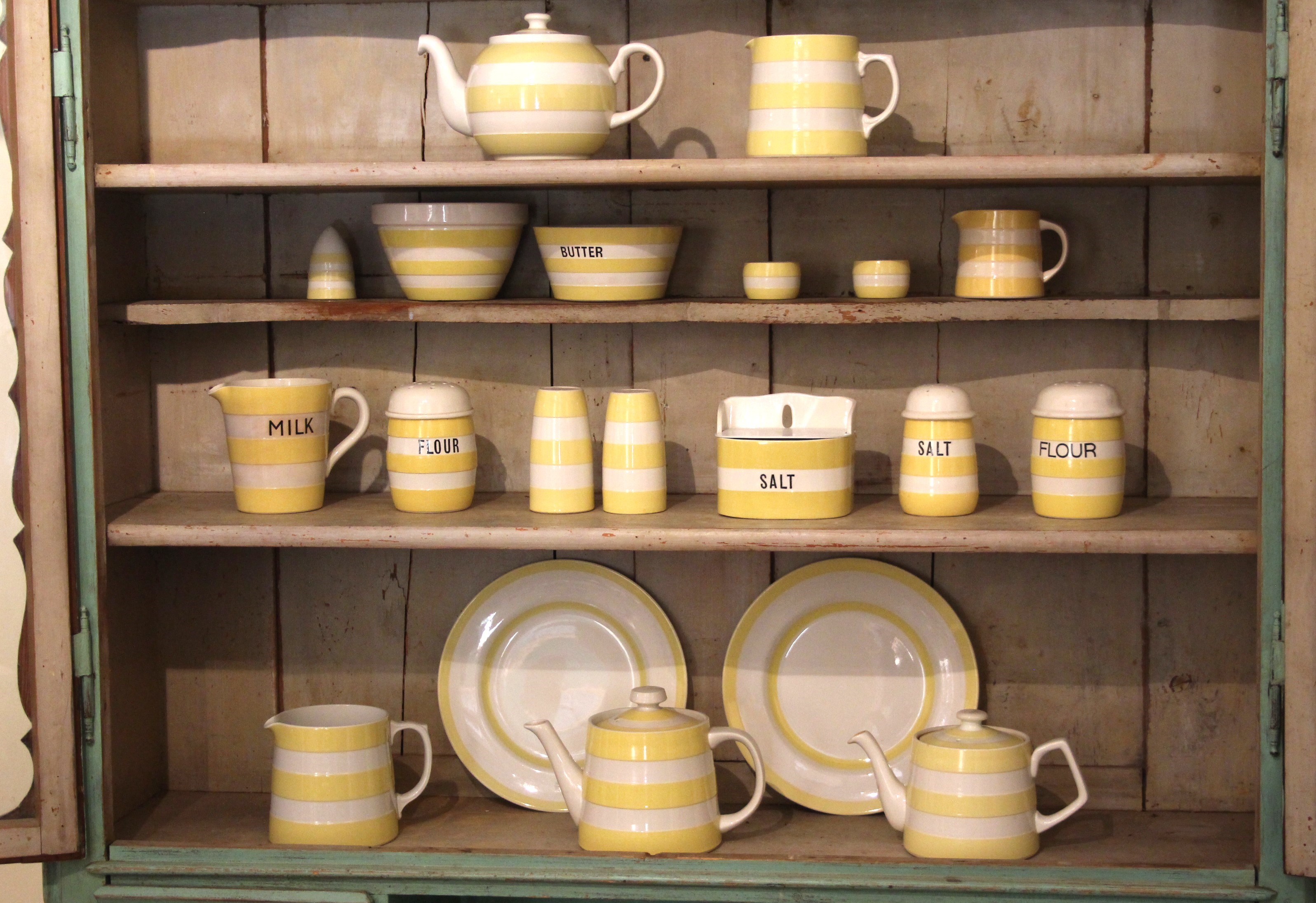 A collection of hard to obtain TG Green Cornishware in yellow and white all in good condition. All with the early mark illustrated except a small jug and teapot with the later insignia.